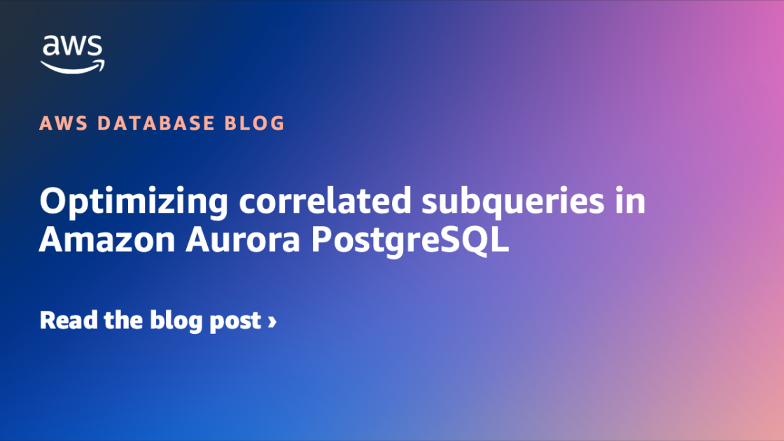 Correlated subqueries may cause efficiency challenges in Amazon Aurora PostgreSQL-Appropriate Version, usually inflicting functions to expertise decreased efficiency as knowledge volumes develop. On this publish, we discover the superior optimization configurations obtainable in Aurora PostgreSQL that may remodel these efficiency challenges into environment friendly operations with out requiring you to switch a single line of SQL code. The configurations we’re going to discover are the subquery transformation and the subquery cache optimizations.